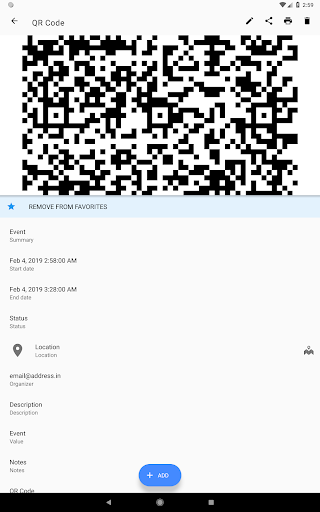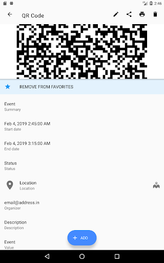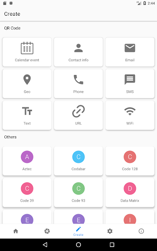 • LOCATION permission is required if you want to create barcode using the device's current location.