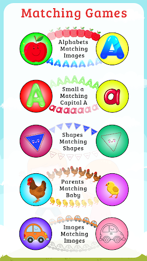 ABC Matching Games :-Our matching alphabets with pictures contains Big Letters, Small Letters, Shapes,Parents and Babys along with Vehicles makes free learning fun games for kids abc and 123.
