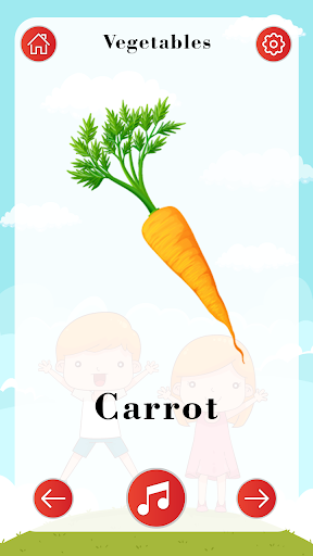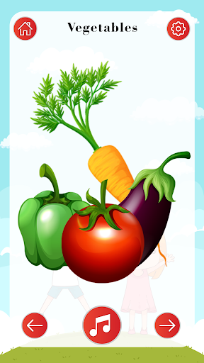 Vegetables : - ABCD kids game learning apps contain vegetables pictures with phonic sounds.