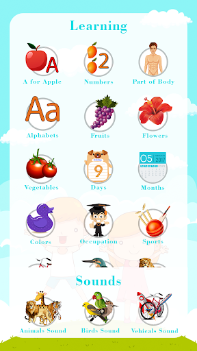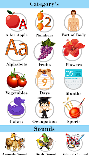 Sounds :- ABCD kids app contains animals, birds and vehicles sounds to make kids abcd game an learning games for toddlers.