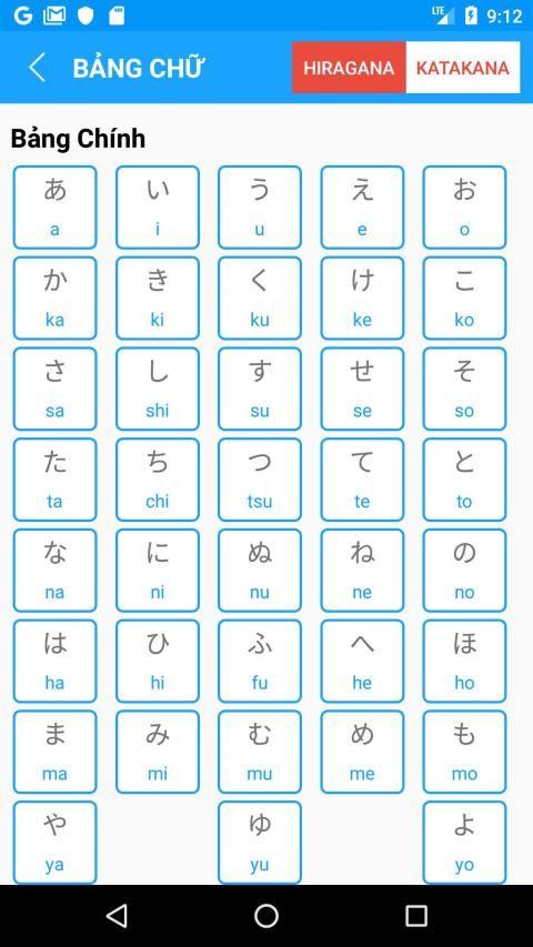 Bảng chữ cái Hiragana và Katakana đầy đủ, giúp bạn bước đầu làm quen với các ký tự và âm cơ bản. Có hỗ trợ luyện tập theo từng nhóm từ giúp bạn dễ ghi nhớ hơn. Hỗ trợ cách phát âm giúp người đọc học thuộc một cách dễ dàng nhất.