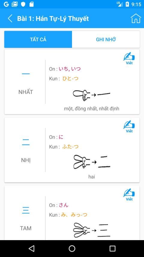 Learning kanji includes more than 100 Kanji syllabus words, more than 2000 common Kanji, full of illustrations for each word and full examples. Users can see how to draw kanji, see examples, explanations of meanings, onyomi and kunyomi sounds. Warehouse for training JLPT exam is very rich and diverse according to N5 levels.