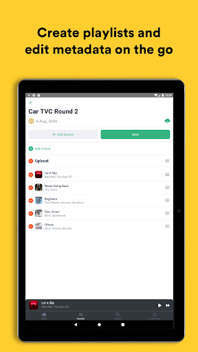 With DISCO for Android, access all your music and playlists wherever you are. Upload and receive files, organize and edit, listen and playlist, with all changes instantly synced to the DISCO web app. Collaborate with your team in real-time – view your teammates’ work and quickly build on it.