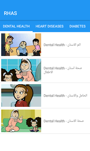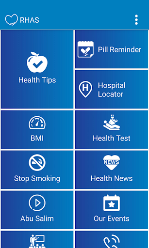 RHAS is a health application that includes a daily health tips, a how to stop smoking section, health tests, a pill reminder feature, and a hospital locator, in addition to Abu Saleem Cartoon series that talks about various health topics