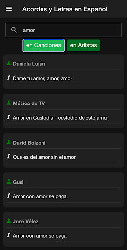 Cari antara jutaan lagu dan artis lagu-lagu dalam bahasa Spanyol dan ayolah gitar Anda, Piano, Ukulele atau Charango.