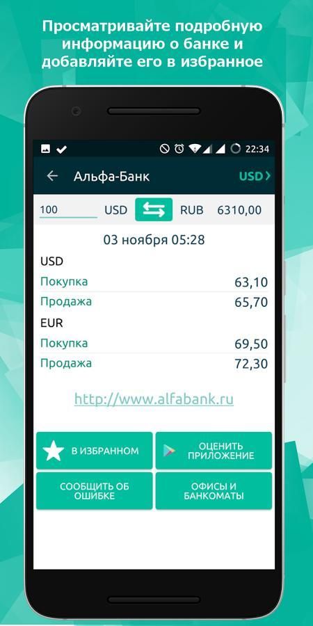- Currency converter (euro or dollar) against the ruble for the selected bank