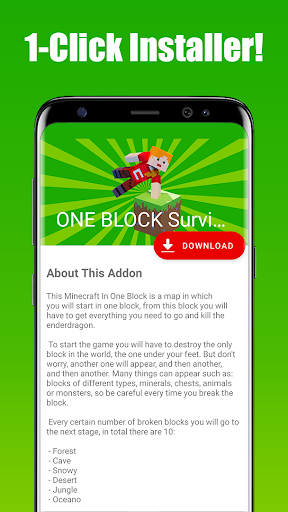 ONE BLOCK Skybock Survival Map for Minecraft PE is an application that allowed you to download & install a fun Minecraft In One Block Map to your Minecraft World in just 1 single tap!