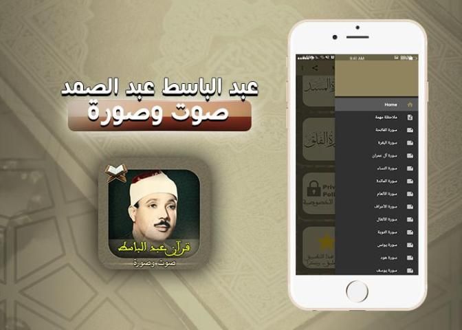 نقدم لكم تطبيق القرآن الكريم كاملا بصوت الشيخ عبد الباسط عبد الصمد بالصوت والصورة، بحيث يمكنكم الإستماع للقرآن الكريم كاملا بصوت الشيخ الفاضل عبد الباسط عبد الصمد وكذلك القراءة من داخل التطبيق، التططبيق خفيف جداً ولا يستهلك بيانات نت كثيرة عند تشغيل الصوت كما ان جودة الصوت عالية جداً وهذا ما سيمكنكم من الإستماع لصوت الشيخ عبد الباسط عبد الصمد الملائكي بجودة ممتازة ورائعة ما سيدخلكم في جو من الخشوع إن شاء الله تعالى،