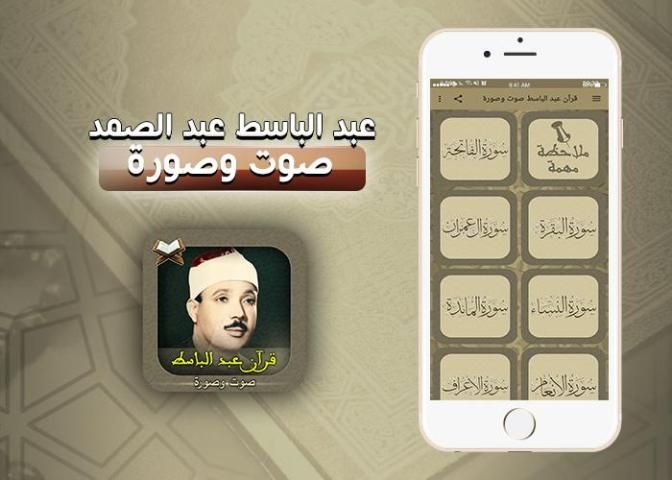 يحتوي على التطبيق على كافة سور القرآن الكريم مكتوبة ومسموعة بصوت الشيخ الجليل عبد الباسط عبد الصمد من سورة الفاتحة الى سورة الناس،