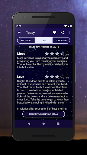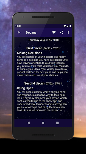 Want to know more ? We even give you access to the ultimate precision tool about your zodiac sign : a detailed view of your decan.