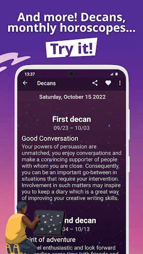 Want to know more ? We even give you access to the ultimate precision tool about your zodiac sign : a detailed view of your decan.