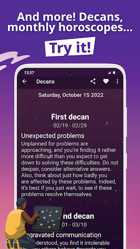 Want to know more ? We even give you access to the ultimate precision tool about your zodiac sign : a detailed view of your decan.