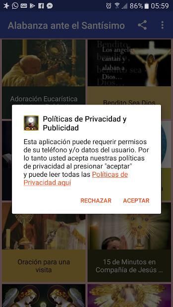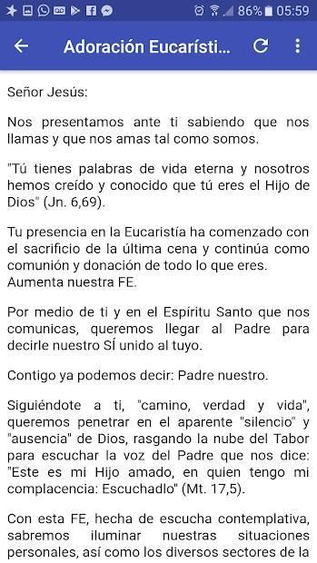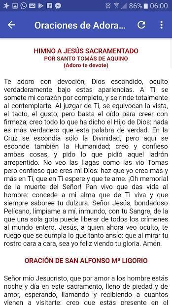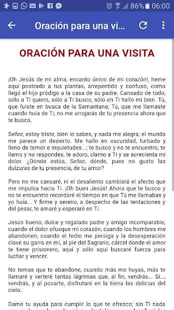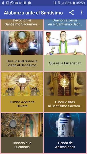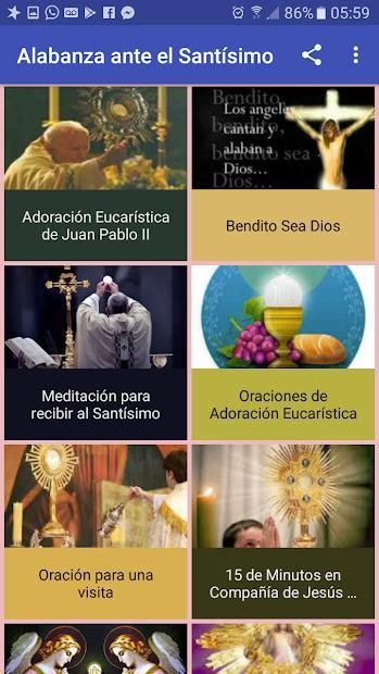 Our application of ALABANZAS AL SANTISIMO SACRAMENTO contains the basic prayers indispensable for the visit to our Lord Eucharist, among which we can mention: