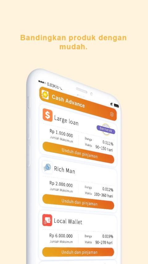 Cash Advance adalah platform agregasi informasi produk pinjaman,sehingga Anda dapat lebih mudah memilih produk pinjaman favorit Anda,karena kami telahmengintegrasikan sejumlah produk pinjaman terkenal.