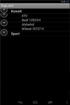 A list of popular satellite channels and their frequencies. Channels include: -Kuwait TV -Al Shahed -Aljazeera Sport -Abu Dhabi Sport -Al Kass This is just the beginning. More channels will be added soon, and the app UI will improve.