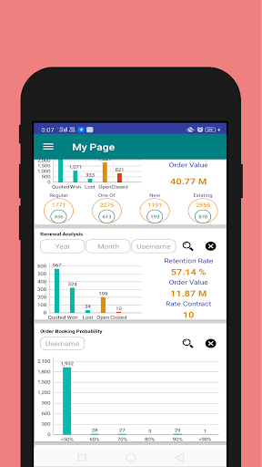 App is equipped with Data Visualization and dashboards to analyze Sales visit , Quotation status , Won/ Loss status timeline wise and user wise. Winning probabilities and ageing statistics of quotation helps management to plan their projection and supports decision making activities.