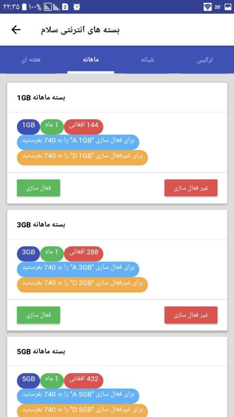All services and bundles of all Afghanistan communication companies are presented in this application and you can get more details about activating these packages in this application. MTN, Etisalat, Roshan, Salam, AWCC
