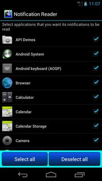 - you need to enable this application in accessibility settings for enabling notification reading function (you can do it by selecting accessibility settings from option menu then select notification reader or form home->settings->accessibility-> select notification reader