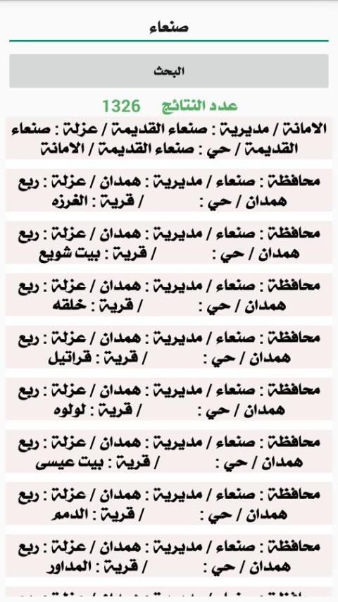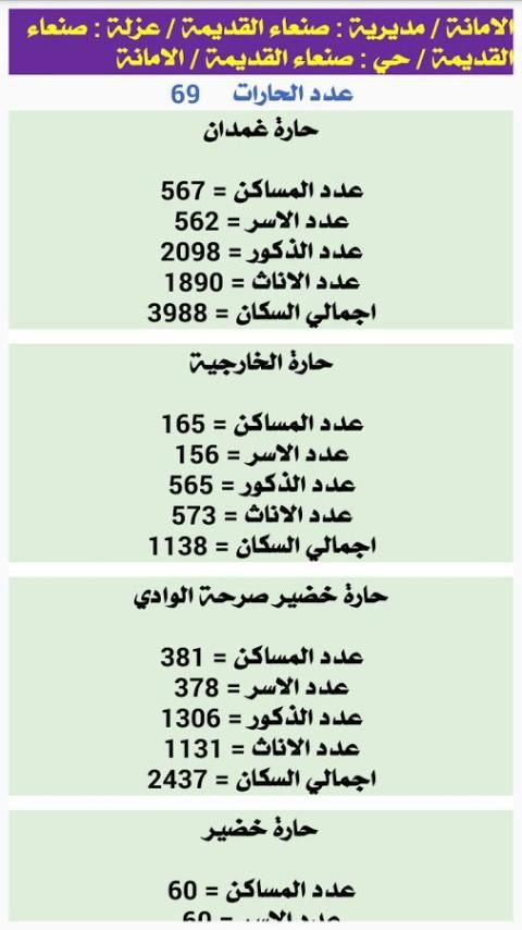 Application areas of Yemen contain neighborhoods and lanes of Yemen with a population and housing