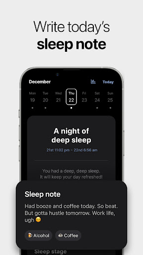Sleep app with accurate sleep measurement, Smart alarms at optimal sleep stages, easily interpreted reports, fantastic dream images, and a Sleep note for making own routines.