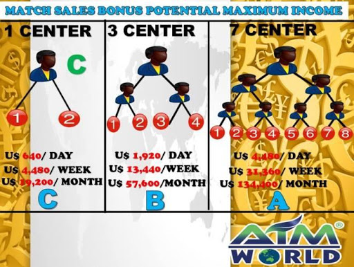 3. MATCH SALES BONUS — When joining, you will have your own AIM Global online account called the DTC. You will have your left and right sales group which is the binary program. On every person from left that matches a person from right, you will earn U$ 40.