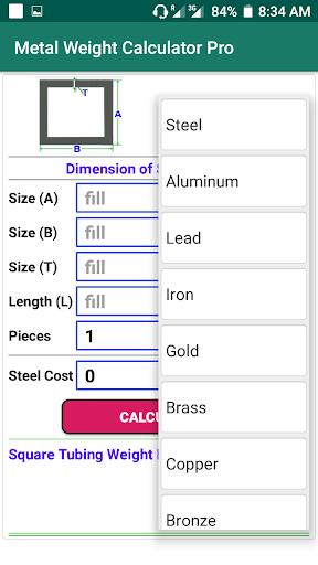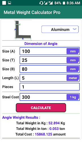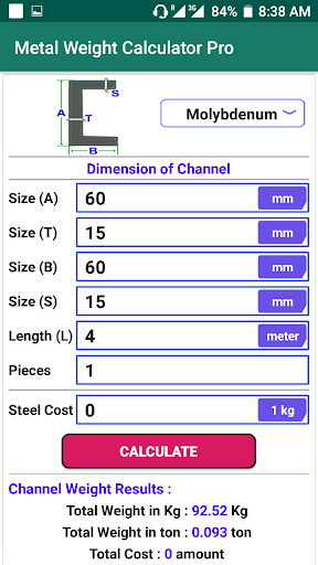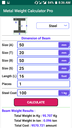 Metal Weight Calculator is a fast and simple app for calculating weights of Steel and metals. Or you can specify weight of the metal to get the length.