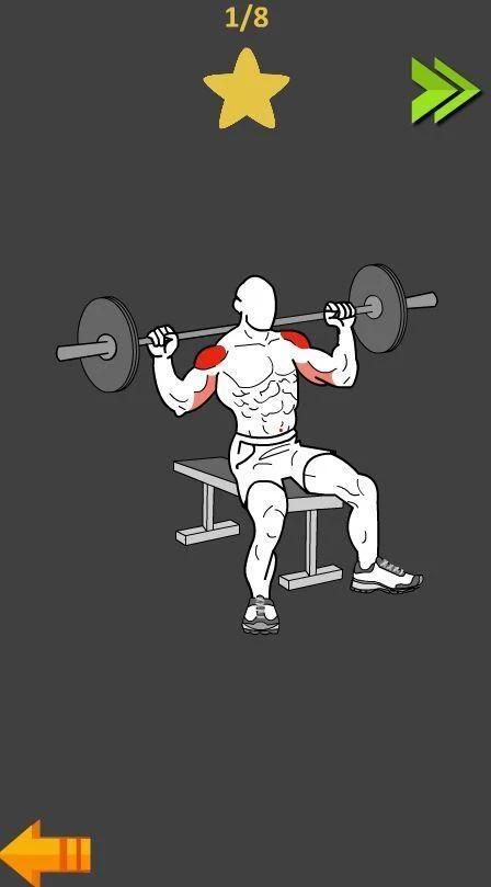 The application has exercises for the muscles of the chest, legs, arms and shoulders as well as exercises for the whole body.