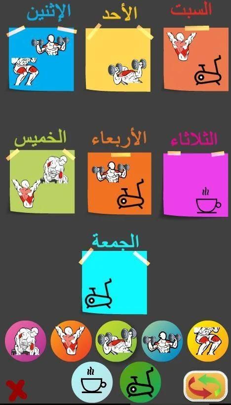 يحتوي التطبيق على جدول اسبوعي للتمارين الرياضية