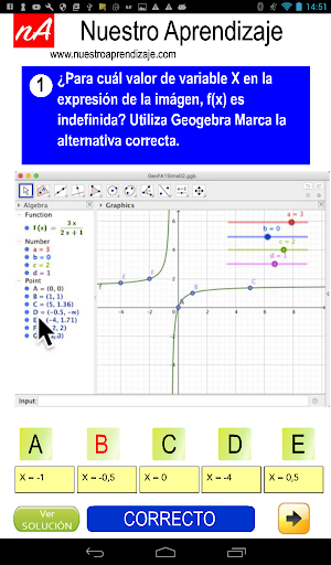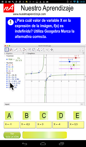 capacita en el contenido de,Unidad Algebra. “GeoGebra restricción de X expresion fraccionaria".