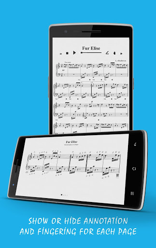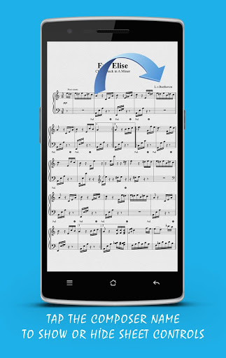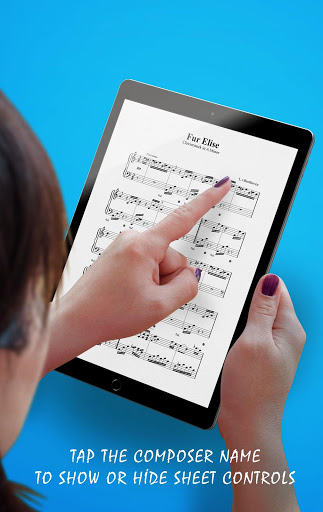Our Piano Sheet Music App contains interactive features hidden from view upon launch yet quickly accessible when you need them. Tap on the composer name (L.v. Beethoven) to show or hide annotation and fingering or play audio from specific parts of the songbook.