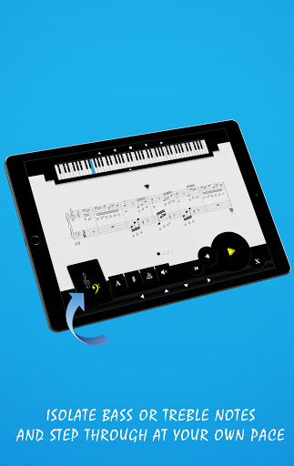 • Step through the notes of a staff at your own pace in keyboard view.