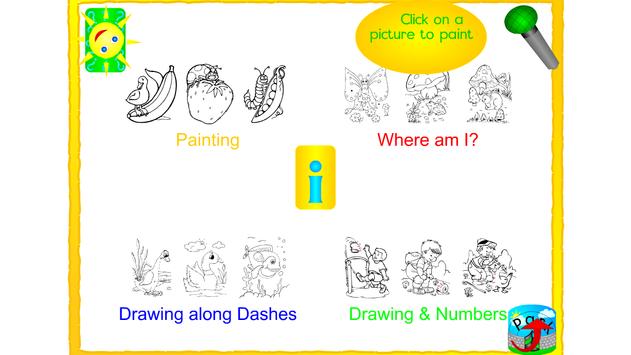Coloring consists of 3 age specific levels which include four coloring methods: Painting, Where Am I, Drawing along dashes and Drawing in Numbers. Mathematics has 3 age specific levels and develops the concepts Equal, Less Than and More Than.
