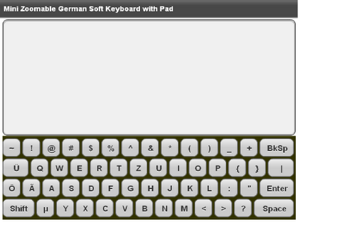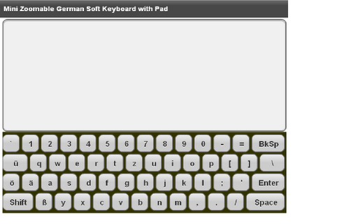 A mini zoomable German soft keyboard with a text area to serve as a notepad or a piece of draft paper. You can fully or partly cut/paste its content to fill out any text areas/fields of other applications.