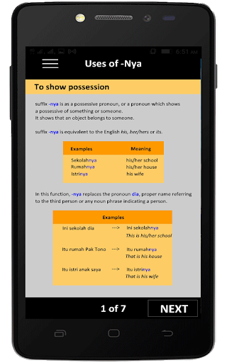 All Indonesian phrases and words are presented to you in both phonetic and original Indonesian writing. They are recorded by an Indonesian native speaker. You can also learn Indonesian grammar with the various examples of sentences in writing and sound.