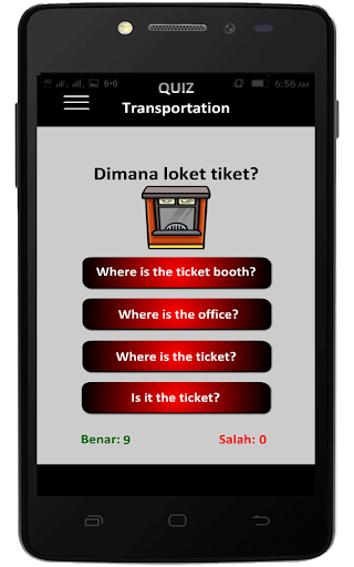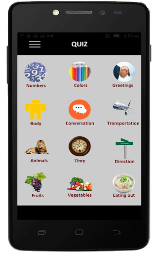 * Quiz >> Unlock: Conversation; Transportation; Animals; Time; Direction; Fruits; Vegetables; Eating Out.