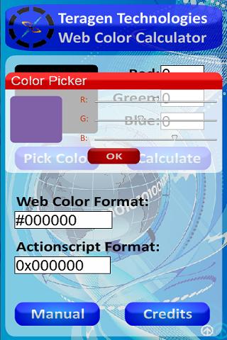 This application is a web development utility designed to calculate web colors (#FFFFFF) from standard red/green/blue values (255,255,255). Version 2 added a color picker to allow users to visually choose which color they wanted using a series of sliders, Version 2 also saw the removal of the "check" button. Version 3 fixes listed below. No known bugs.