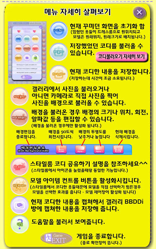 ★ ★ Khi bạn chọn quần áo bạn có thể sử dụng những bộ quần áo đúng điều khiển các nút để điều chỉnh quần áo của họ. Và bạn có thể thay đổi độ sâu của quần áo. B ★ Bạn có thể thay đổi vị trí hoặc kích thước của mô hình bằng cách sử dụng nút mẫu kiểm soát mà đi ra khi bạn chọn mô hình. ★ ★ Để dễ dàng di chuyển hoặc phóng to mô hình, Nếu bạn kéo chức năng phối hợp bằng cách sử dụng nút khóa, những bộ quần áo không thể kéo và mô hình có thể được di chuyển và thu nhỏ. B ★ ★ ★ Menu để mang lại hình ảnh từ menu để một hình ảnh hoặc máy ảnh Bạn có thể nhập hình ảnh ảnh vào nền. Bạn có thể thay đổi nền với mô hình cung cấp dưới đây và bạn có thể thay đổi nền của 36 nền với THÊM ..