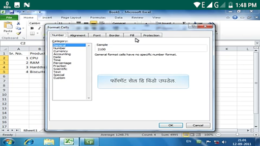 Узнайте M S Excel 2010 в Marathi Step по шагам по шагам, курс видеоурождения. Как форматировать номер в Workshetseet.ading Cell.