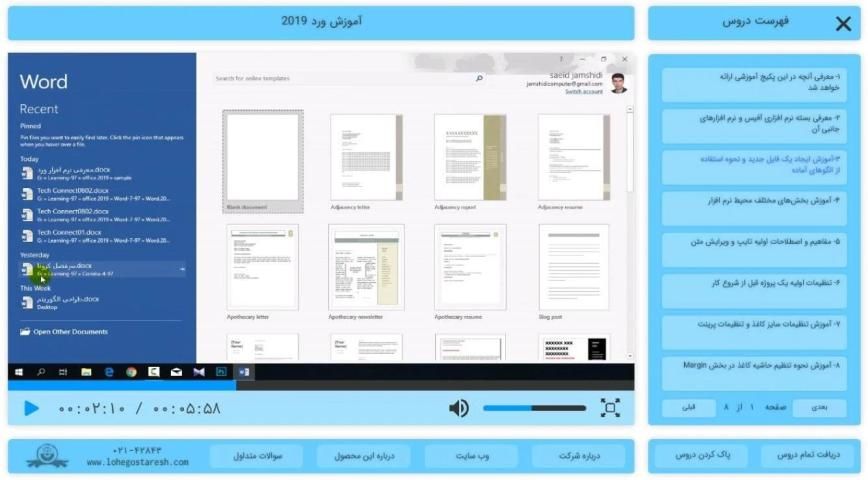 نرم افزار ورد یکی از زیر مجموعه‌های Office است و برای عموم کاربران لپ‌تاپ و دستگاه‌های دیجیتال کاربرد دارد. شما می‌توانید با استفاده از این فیلم آموزشی به یادگیری نرم افزار ورد بپردازید. در این ویدئوی آموزشی همه سرفصل‌ها و نکات مهم برای یادگیری ورد آموزش داده شده است. بنابراین با استفاده از آن یادگیری word و تسلط روی مفاهیم این نرم افزار ساده‌تر از پیش خواهد بود.