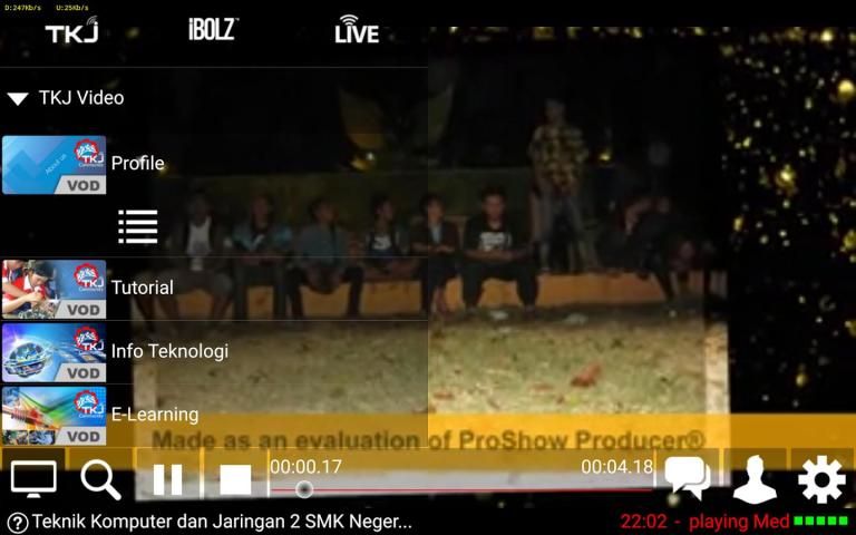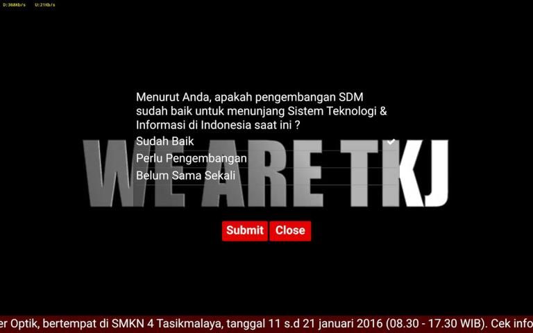 Aplikasi yang dirancang untuk masyarakat luas dalam mengetahui kiprah seluruh SMK di Indonesia dengan jurusan Teknik Komputer dan Jaringan dalam menciptakan sebuah karya untuk menunjang Sistem Teknologi & Informasi yang terbaik untuk Negeri. Materi pembelajaran berbentuk video, berisikan Profil setiap SMK di Indonesia, Tutorial, Info Teknologi dan E- Learning yang dapat ditonton di mana saja dan kapan saja, dengan koneksi yang rendah; menggunakan Smartphone berbasis Android.