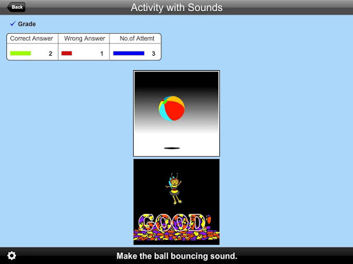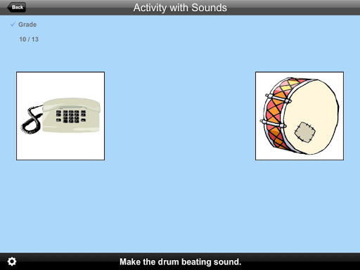 In this app, the student make a certain sound. The student clicks on the item that makes the sound that is requested by the program.