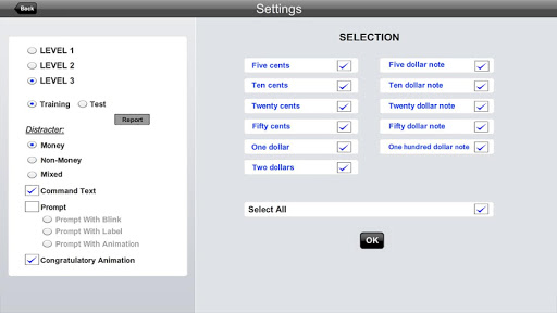 This option is selected by default. When this box is checked, the program pronounces the name of the coin or note. If unchecked, it doesn't say the name.