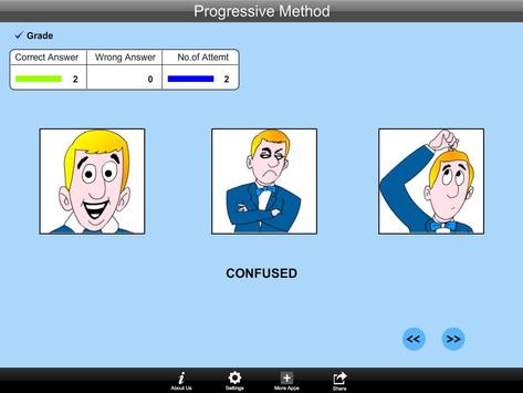 This “Progressive Method” is designed to introduce emotional expressions to the student one by one. This method allows the student to master the words for emotional expressions gradually.This program can be used by kindergarten children or learning-disabled (autistic or with other disabilities) children of various ages.