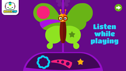 Kids get to decorate colorful butterflies and listen to the words "left" and "right" each time items are placed on the corresponding side of the screen.