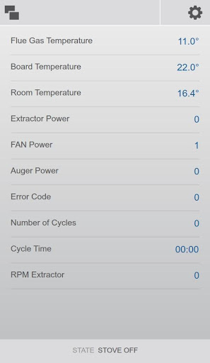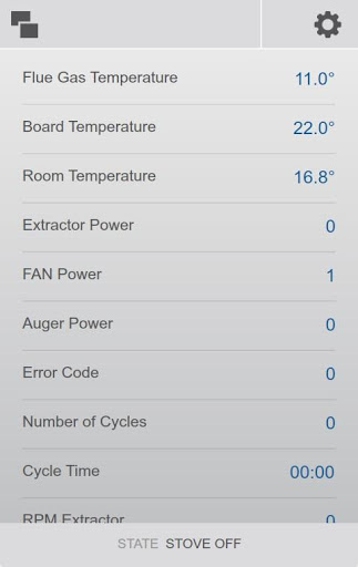 Have real-time access to various operating parameters, such as flue gas and room temperature (in the case of the stove), state of the room fan and auger, etc.