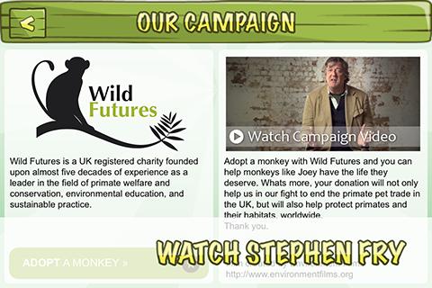 Are you quicker than a monkey? Collect the nut by rolling it through a range of engaging challenges using only your finger Based on real puzzle feeders used by monkeys, Monkey Nuts pitches you against Joey, Kodak and Charlie Brown from The Monkey Sanctuary in a battle for the fastest times.In the wild, monkeys would spend a lot of their time searching for food. At our project, the Monkey Sanctuary, we try to keep our monkeys busy and entertained and using a puzzle feeder is a great way to do this Enrichment such as this is important to stimulate these highly intelligent animals, who we rescue from the primate pet trade, often from situations of neglect. Play the game, watch our video with Stephen Fry and adopt a monkey today.Features: Roll the nut through different puzzles Race against time with the Bomb Nut Test your patience with the Touchy Nut Challenge your friends on Facebook View our Campaign video featuring Stephen Fry Show your support by donating to us onlineVisit http:www.adoptamonkey.org for more informationProduced by Wild Futureshttp:www.wildfutures.orgDeveloped by Elixel Ltd.http:www.elixel.co.ukGame Music by Working Bird Ltd.http:www.workingbird.co.ukCampaign Video by Environment Filmshttp:www.environmentfilms.orgWild Futures is a Registered Charity 1102532NOTE: Facebook Login has issues on Android 4.0