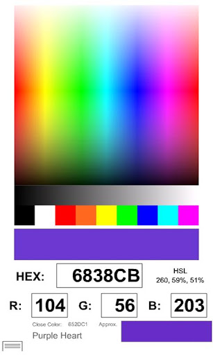 Codes shown are HEX, RGB and HSL as well as a ‘close color’ name.
