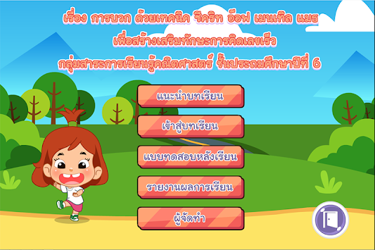 สื่อการเรียนการสอนในศตวรรษที่ 21 เพื่อพัฒนาทักษะการคิดเลขเร็ว ในรูปแบบบทเรียนแอปพลิเคชั่นด้วยเทคนิค ซีคริท อ๊อฟ เมนเทิล แมธ เป็นเทคนิคในการออกแบบและพัฒนาสื่อ ด้วยหลักการของการสร้างขึ้นอย่างเป็นระบบตามหลักการของ ADDIE model และแนวคิดของ Loch and Donovan โดยเริ่มจากการศึกษาเรื่องกระบวนการจัดการเรียนการสอนวิชาคณิตศาสตร์ด้วยเทคโนโลยีของแท็บเล็ต คือ การศึกษาค้นคว้า เกี่ยวกับประโยชน์ข้อดีข้อเสีย ของการนำเทคโนโลยีจากแท็บเล็ต ใช้ในการเรียนการสอน ได้มีการจัดบทเรียนต่างๆ ตามแบบแผนที่หลักสูตรได้กำหนดไว้ทำให้ได้บทเรียนที่มีการนำเสนอเป็นระบบ ประกอบกับการนำเอา ซีคริท อ๊อฟ เมนเทิล แมธ ของศาสตราจารย์ ดร.อาเธอร์ เบนจามิน (Arthur Benjamin) ซึ่งเป็นเทคนิคในการพัฒนาทักษะการคิดเลขเร็วมาช่วยในการออกแบบบทเรียนสำหรับเนื้อหาของการบวกเลข จากผลงานวิจัยพบว่า ผู้เรียนที่เรียนด้วย แอปพลิเคชั่นบนอุปกรณ์แท็บเล็ต เรื่องการบวก ด้วยเทคนิค ซีคริท อ๊อฟ เมนเทิล แมธ เพื่อสร้างเสริมทักษะการคิดเลขเร็ว สำหรับนักเรียนชั้นประถมศึกษาปีที่ 6 มีทักษะการคิดเลขเร็วและ ผลสัมฤทธิ์ทางการเรียนที่สูงขึ้นกว่าก่อนเรียน รวมถึงความพึงพอใจที่มีต่อบทเรียนอยู่ในระดับสูงมาก ดังนั้นการนำเอาแอปพลิเคชั่นบนอุปกรณ์แท็บเล็ต ไปใช้ในชีวิตประจำวันทำให้การพัฒนาทักษะการคิดเลขเร็ว ทำได้ง่ายขึ้น ตอบสนองความแตกต่างกันของแต่ละบุคคล สามารถเรียนรู้ได้ทุกที่ทุกเวลา ประกอบกับแอปพลิเคชั่นนี้ยังสามารถแจ้งผลการประเมินก่อนเรียนและหลังเรียนให้กับผู้ใช้งานเป็นการเสริมแรงทางบวกอีกทางหนึ่ง แอปพลิเคชั่นนี้จึงถือเป็นนวัตกรรมของการเปลี่ยนแปลงผู้คนในสังคม สำหรับการใช้ชีวิตประจำวันสำหรับการพัฒนาทักษะการคิดเลขเร็วอย่างแท้จริง