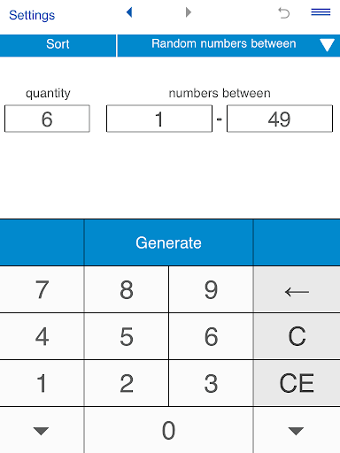 Random Number Generator is a simple and easy to use application that can generate a list of up to 200 random numbers based on your preferences.