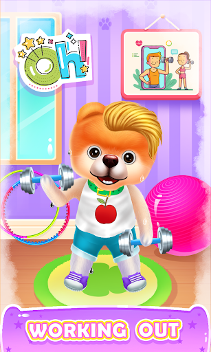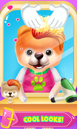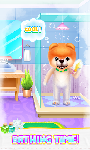 Spend an amazing time with our cutest Pomeranian puppy and learn what it takes to own a virtual pet. Fulfill his needs and have fun while looking after him. Begin with the cleaning process and here you will throw him into the shower to wash the dirt that gathered in his fur. Use the suitable products for his body and for his head and face, then move further to the teeth brushing. Clean his mouth and take him into the kitchen where you will prepare some delicious food. Serve his favorite dish and keep fulfilling his needs. If you think he looks sleepy you might want to let your puppy take a nap. Now that your animal has rested you can get into the exercise. Let the Pomeranian puppy have his morning workout routine and help him out if he needs to. Move along to the dressing part where you will pick some cute outfits with a hint of your style. Find the best look for your cute puppy and accessorize everything with interesting details that will make him look fabulous. If you choose the outfit with a dress you will have a nice pair of boots to match with and also a fashionable pair of sunglasses. There are multiple clothing items you can choose from. Don't forget to prepare his hairstyle in the hair salon section. Find an appropriate haircut and make him feel special. Now you can have more fun in the mini-game section where you have to match the fruits to win the game. Do your best and have a great day with your favorite pet.